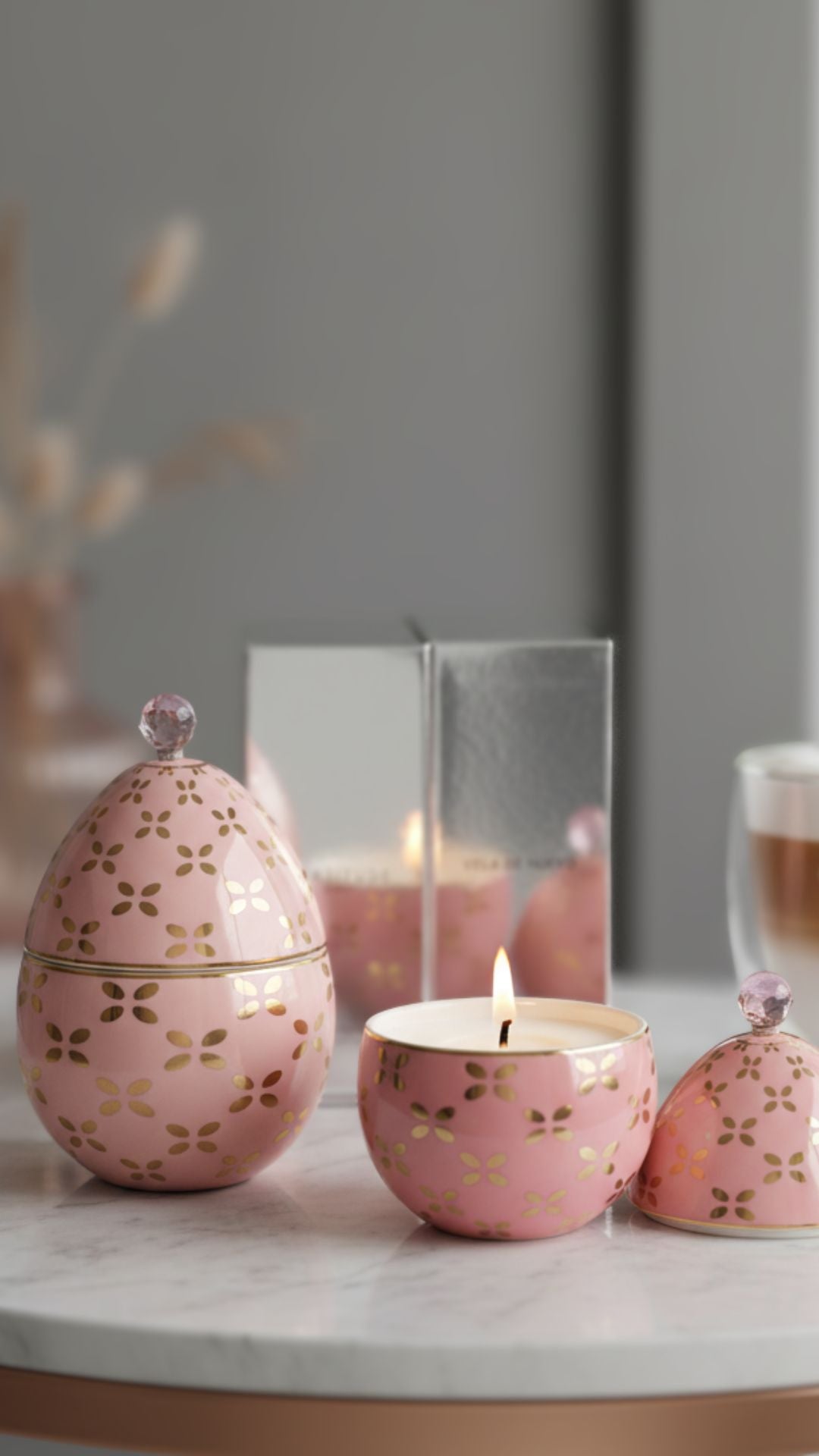 Vela De Huevo-Rosa | Jasmine-Saffron-Cedarwood | Scented Ceramic Candle-13cm