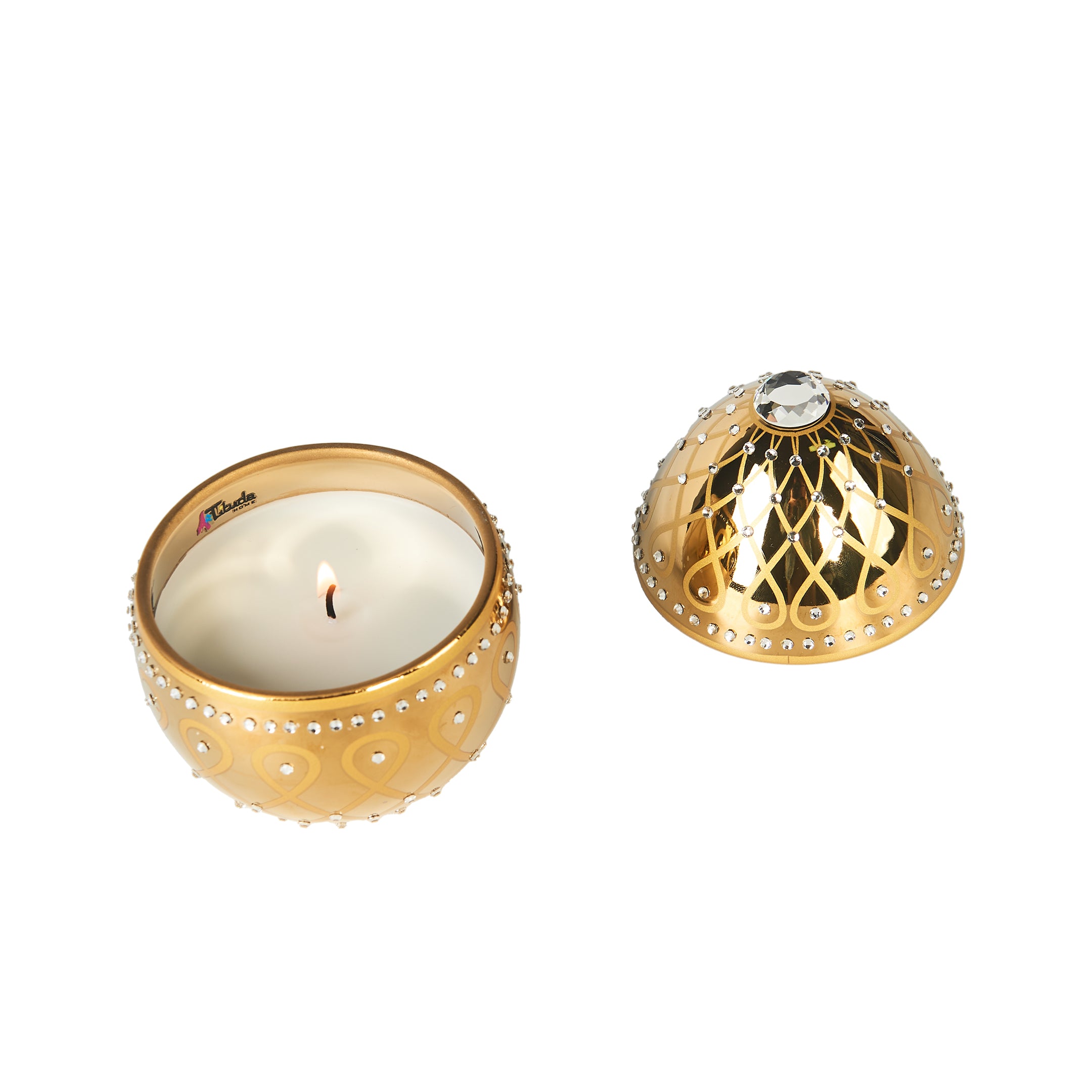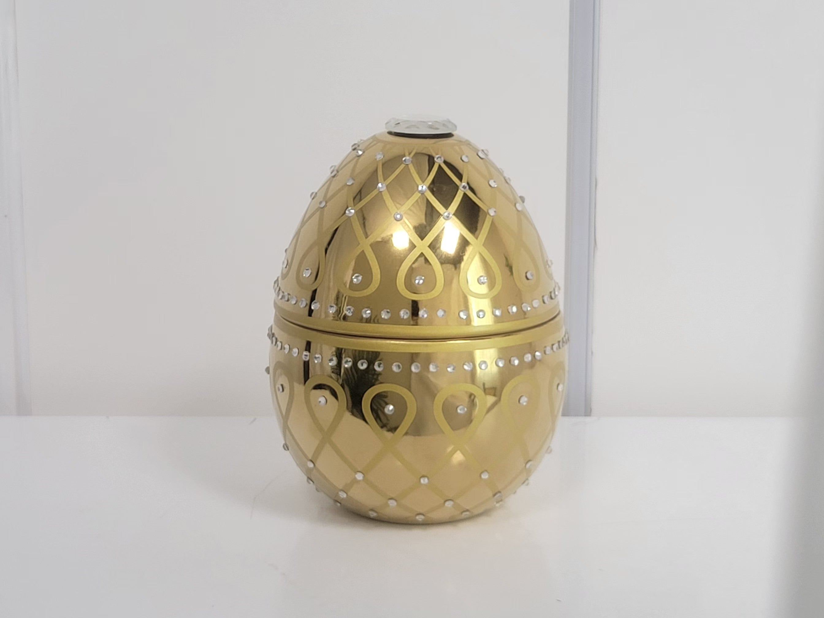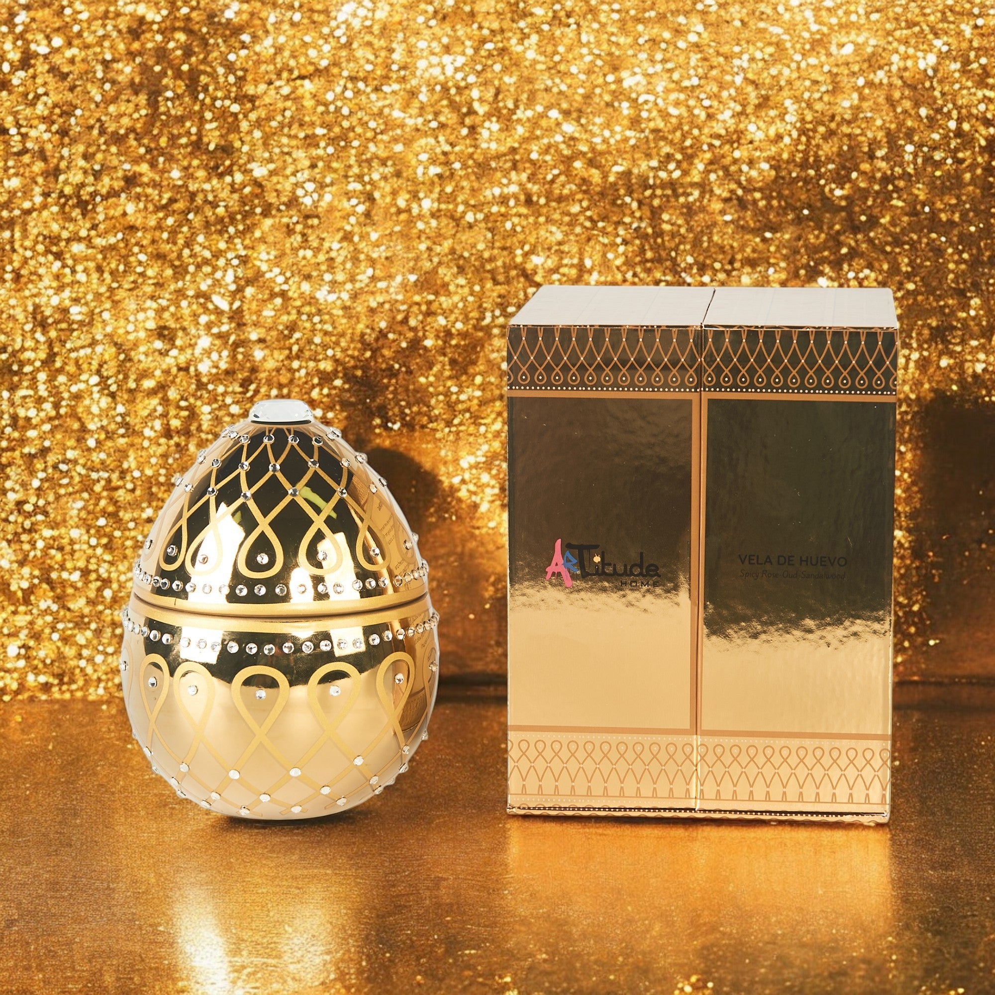 Experience the enchanting charm of the Vela De Huevo Aurora scented candle, a striking egg-shaped design adorned with shimmering rhinestones. This luxurious candle is a perfect blend of artistry and fragrance, making it a standout addition to any decor.